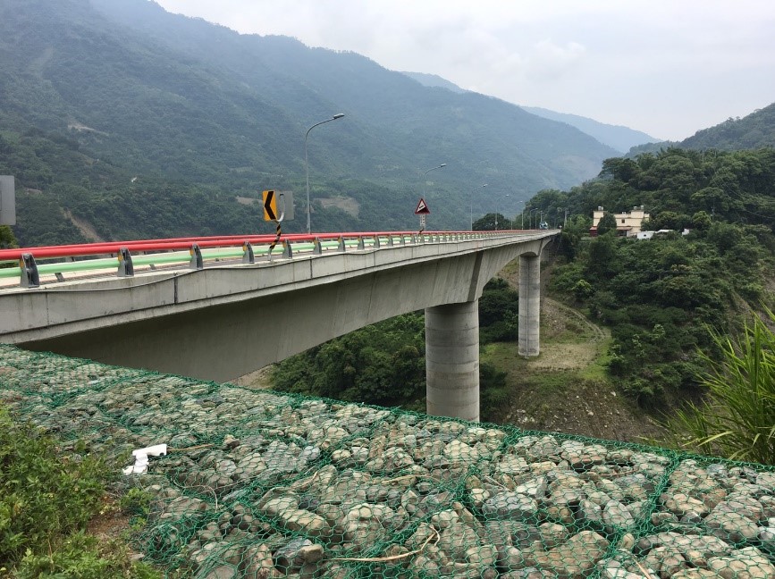 因工址位處偏遠山區,又設計橋梁高度最高, 故施工困難度極高,所需排除之各項施工問 題更錯綜複雜,經本公司團隊努力下達到「零工安、 零職災」順利完成本工程,更是榮獲「105 年度交通 部金路獎傑出工程類-第一名」之殊榮。